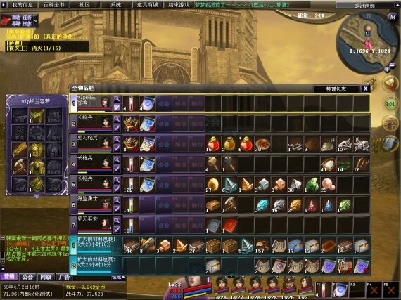 一个角色有10格,笔者只玩到33级,加上6个佣兵共有70个格,加上游戏内,系统自动赠送的材料背包卷轴,可激活另外30个额外格子,只能放材料哦。